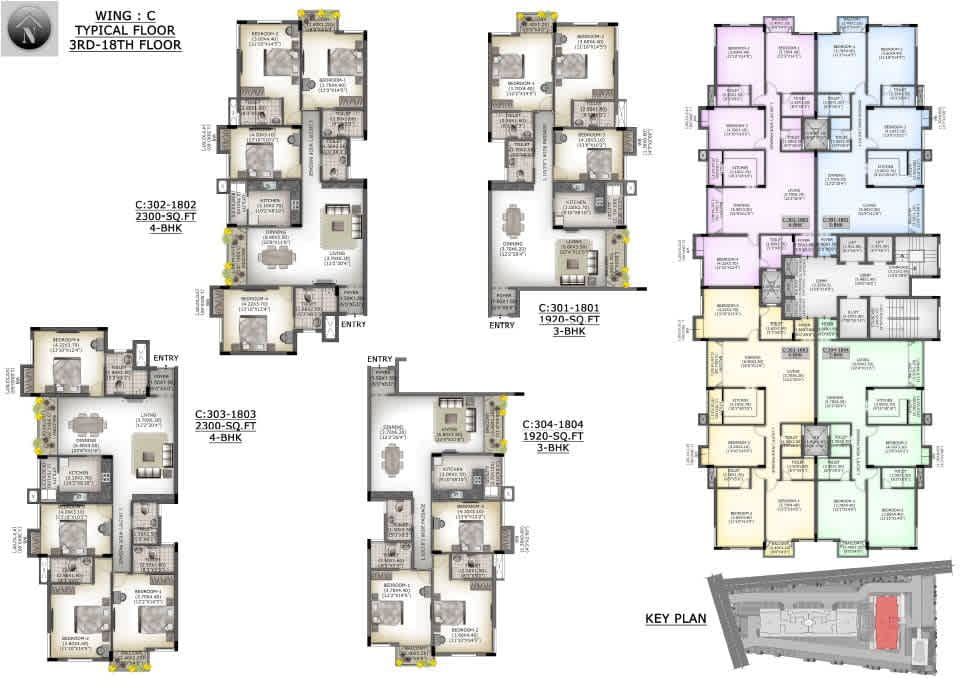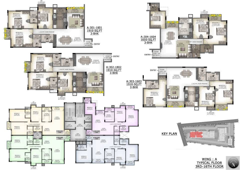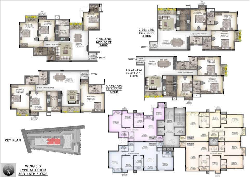 - 2 Fully Automatic regular passenger lifts and 1 Service lift in each Wing