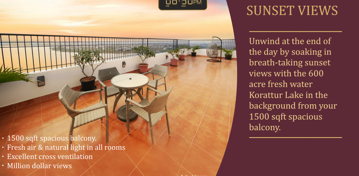The sun traverses across the project giving abundant sunlight across the project across all the apartments because the alignment is such that you will get fair amount of sunlight during the day.
